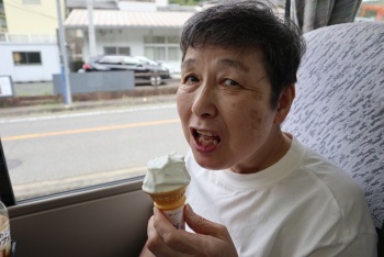 道中、おやつを楽しみ、お喋りに弾んでいました。