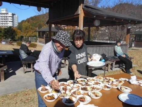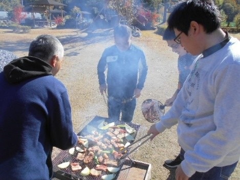 外の空気を感じながら、焼きたてのお肉や野菜を囲む時間はとてもにぎやかで、利用者の皆さまの笑顔がたくさん見られました。